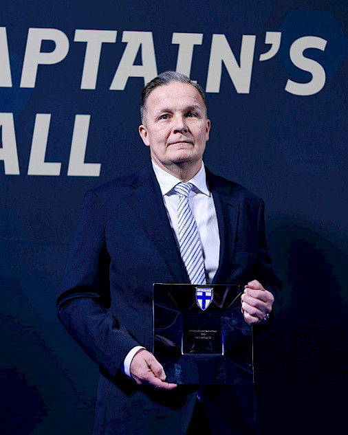 HJK:ssa seuratoiminnan asiantuntijana tätä nykyä toimiva Valla ottaa palkinnon vastaan kiitollisena.