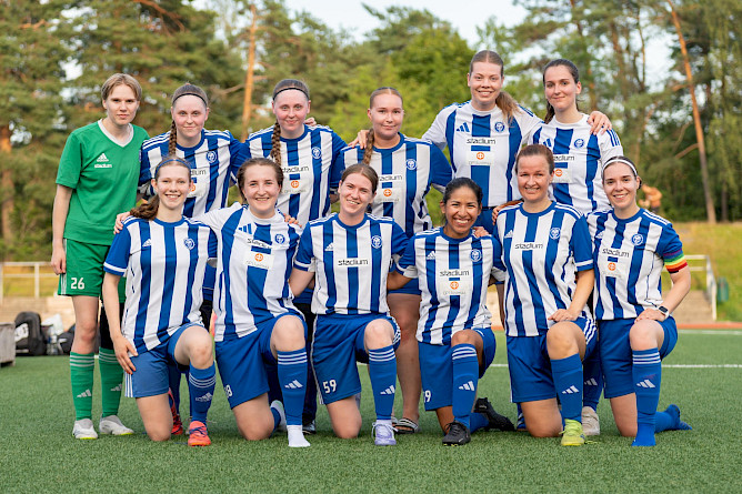 – Pelaamme kolmessa eri naisten sarjassa: Harraste 11vs11, Harraste Nelonen 7vs7 ja Harraste Vitonen 7vs7. Olemme jakautuneet näiden sarjojen mukaisiin peliryhmiin, ja joka viikko jollain peliryhmällä on peli. Kiireisimpinä kesäaikoina meillä voi olla jopa kolme peliä viikossa! Talvisin osallistumme vähintään yhteen talvisarjaan, mutta silloin tahti on huomattavasti rauhallisempaa, kun pelejä on noin 1–2 kertaa kuukaudessa.