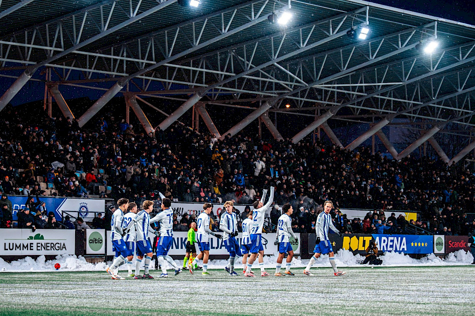 Miltei täydellä Bolt Arenalla 9121 katsojaa todisti kylmänä keskiviikkoiltana historiallista voittoa, kun HJK löi Manchester Cityn UEFA Youth Leaguessa ja eteni 16:n parhaan joukkoon.