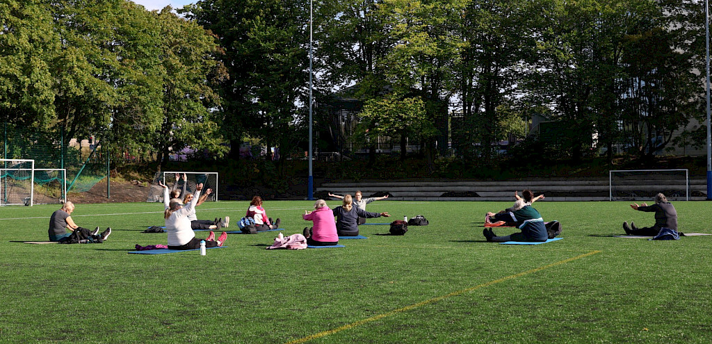 – Ajatus on, että kävijät voivat valita oman rytminsä. Joku voi käydä esimerkiksi kerran viikossa ja toinen vaikka joka päivä, siksi ohjelma vaihtelee. Ohjelmassa on esimerkiksi kehonhuoltoa, pelejä ja luentoja liikkujien toiveiden mukaan. Perjantai on esimerkiksi aina vähän palauttavampi ja vapaamuotoisempi, jolloin voi olla vaikka mölkkyä, tietovisaa tai muuta rentoa yhdessäoloa.