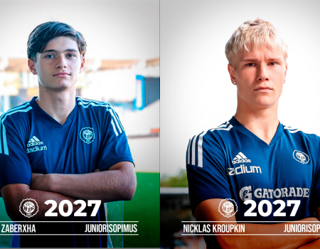 HJK on solminut juniorisopimukset Nicklas Kroupkinin ja Dion Zaberxhan kanssa. Molempien sopimus jatkuu kauden 2027 loppuun. Kaksikko on vuosikertaa 2009 ja pelaa tällä kaudella BSM-akatemiajoukkueessa.
