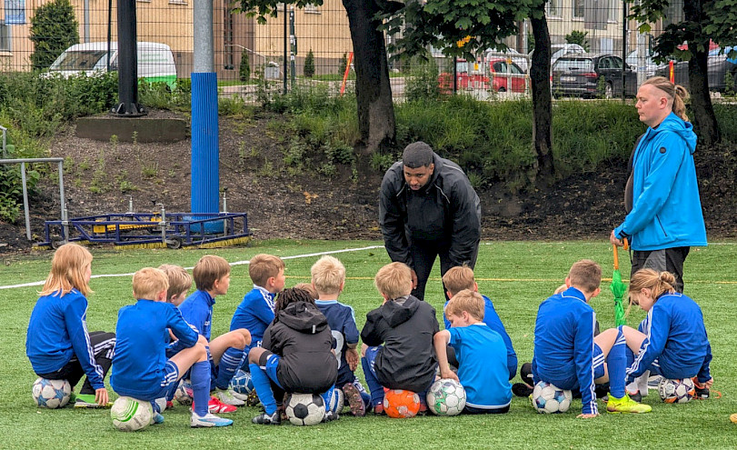Jokaiseen leiripäivään kuului kahdet harjoitukset, aamun treeneissä keskityttiin pääasiassa haastamiseen (1vs1, 2vs2, 2vs1, 3vs2), maalintekoon ja erilaisiin pienpeleihin, ja iltapäivällä treenit olivat aina puhdasta pelaamista. Koko viikon ajan kentällä vallitsi energinen ja innostunut tunnelma, ja leiriläiset olivat ohjaajien tavoin täysillä mukana.